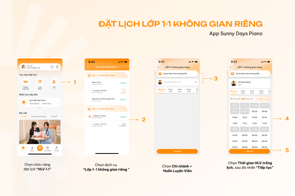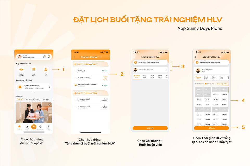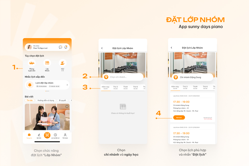 3. Hướng dẫn đặt lịch luyện đàn